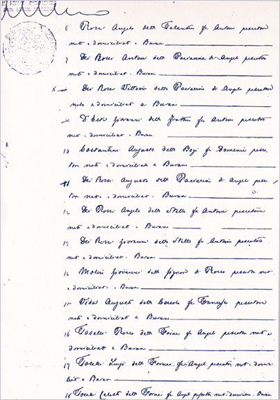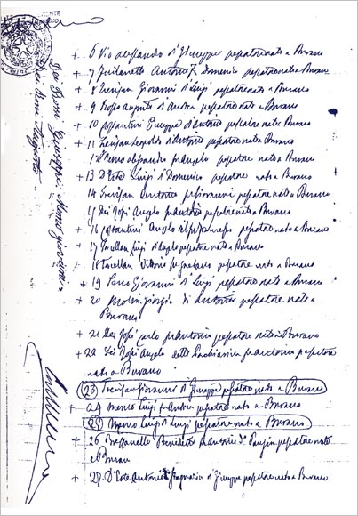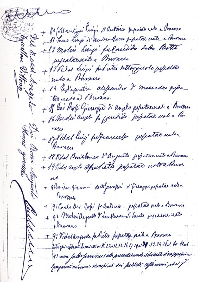 Alla compagnia Vidal Augusto fu Francesco di Canolo furono assegnati i fossi dei Forti di S. Erasmo nuovo e vecchio; alla compagnia Senigaglia Giuseppe e