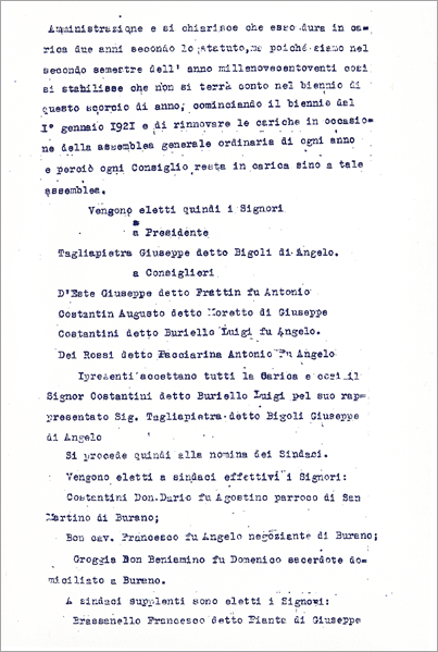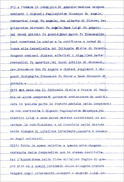 20.06.1949 - 23.06.1951 Memo Angelo "Caenasso" Bon Marcello "Ciapatte" Costantini Gustavo "Bagatella" " Tagliapietra Giannino "Zanmaria" " Memo Alberto "Ballarin" " Memo Attilio "Caenasso" " Molin Luigi "Boraccio" " Collegio Sindacale:Venni Comm. Giovanni, Amadi Giuseppe e D'Este Vittorio. |