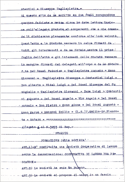 13.03.1978 - 21.12.1981 Memo Rag. Romano Presidente Costantini Mario "Padrin" V. Pres. Costantini Giuseppe "Padrinello" Consigliere Dei Rossi Federico "Strighignol" " Dei Rossi Rino "Pacciarina" " Costantini Romano "Burieletto" " Vidal Attilio "Mastrille" " Il 10.07.1982 viene rinnovato il Collegio Sindacale e vengono eletti: Dott. Angelo Baroncini, Dott. Guido Zannoni e Bon Erminio, che saranno sempre rieletti, tanto che risultano ancora in carica. |
