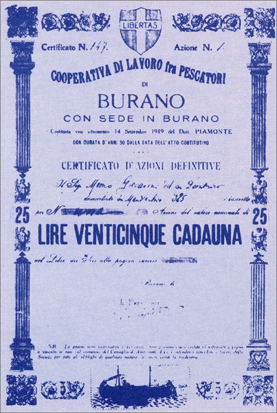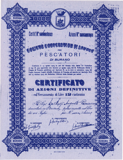 • Società Anonima Cooperativa di lavoro fra pescatori di Burano (Costituita il 15 agosto 1904)