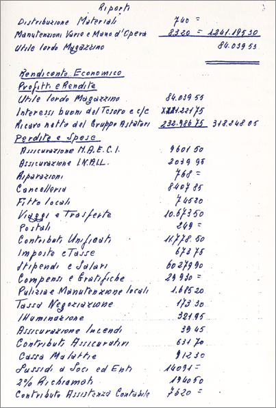 Il fatturato degli ultimi tre anni si aggira in una costante di £. 3.200.000.000. La gestione della Cooperativa è molto complessa con quattro impiegati in sede