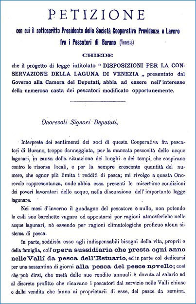 Petizione del Presidente della Cooperativa di Burano